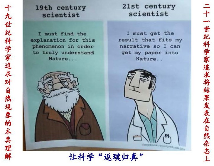 我的科学公益报告《做自己的科学研究》前言部分展示了一张图片(图1)。这张图片是多年前我的一个学生发给我的,他当时在瑞士苏黎世联邦理工学院岩石磁学实验室学术访问。他所在实验室门上不知道是否有意迎合中国春节习俗张贴了一副对联,这副对联没有横批。上联是:19th century scientist: I must find the explanation for this phenomenon in order to truly understand Nature(19世纪的科学家追求对自然现象的本真理解);下联是:21th century scientist: I must get the result that fits my narrative so I can get my paper into Nature (21世纪科学家追求将研究结果发表在自然杂志上)。我看完对联后发现,这副对联很有深意,不愧是高水平学术机构向公众展示的学问风范。这副对联通过上下联对比手段,似乎表达了200年来国际学术界学术风格的演变特点。