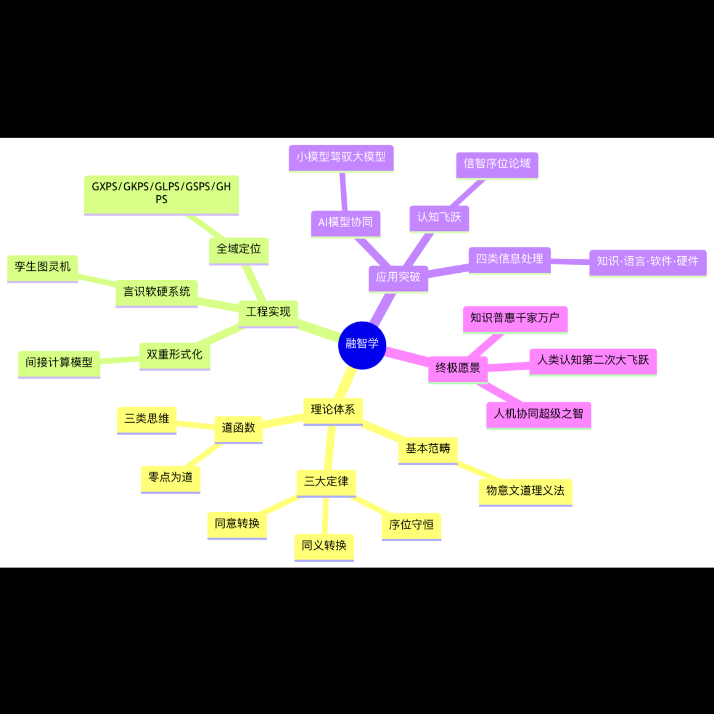融智学创立者邹晓辉我今晨灵感是用最精鍊的方式方法汇总融智学新范式2000年公开发表于北京师范大学的系统科学之窗论文专区;中国专利局发明公报公开发表一种知识信息数据处理方法及产品核心基础发明专利的说明书全文2000年;理论工程应用三部曲实为融智学的理工文三科宣言且明确物意文道理义法序位基本范畴及其数学结构后来进一步明确了零点为道函数且用单一集合、分层集合、分类集合(标志物、属性意、特征文三个基本类,即:理、义、法,序位逻辑和联动函数不仅在P进制数内部而且拓展至双重形式化表征的Z进制字式图表音像立活的间接计算模型)2002年独立做出言和语的关系论证及言和语的关系数据库实证小模型即孪生图灵机暨形式化中文屋及其多级有针对性地调用分别建构出全域测序定位系统GXPS支持的全球语言定位系统GLPS全球知识定位系统GKPS全球软件定位系统和GSPS全球硬件定位系统GHPS言识软硬形式化系统工程融智学验证技术体系做到了极致不仅充分证成了物意文道理义法序位基础理论融智学的哲逻数自社工文心知识内容信息处理系统工程还有字式图表音像立活语言形式信息处理系统工程及天动植真细放病粒硬件载体物质能时空信息处理系统工程以及涵盖知识语言软件本体信息处理系统工程从而汇总四类现象信息处理之智及其遵循的序位关系唯一守恒定律、同义并列对应转换定律以及同意并列对应转换定律至此理论融智学的三大定律和道函数及其形象思维x抽象思维y直觉思维z三类思维坐标工程融智学三类形式化理解模型三类孪生图灵机多胞冯氏机全域测序定位系统GXPS全球语言定位系统GLPS全球知识定位系统GKPS以及全球软件定位系统GSPS和全球硬件定位系统GHPS所形成的AI小模型驾驭AI大模型不仅实现人类智力HI的教管学用社会化系统工程融智学而且建构言识软硬形式化系统工程融智学造就AI小模型很好地理解并应用AI大模型进一步论证理论融智学的道函数及其抽象驾驭物意文三类现象信息处理技术及其系统工程区分硬件载体物质能时空与软件本体文及其选择用意暨智确立信智序位的认知论域区别于质能时空的自然论域稳稳地站在了哲逻数自社工文心众多学问学科集群巨人们的肩上高瞻远瞩且高屋建瓴绘制了融智学蓝图超越了哲学和科学进而在古希腊哲学近现代科学完成的以质能时空论域为标志的人类认知第一次大飞跃基础之上回顾中国古代国学积累的学问天地人三才金木水火土五行等后人很难透彻理解的易经道德经论语孙子兵法墨经黄帝内经等等国学经典均可纳入汉字棋盘在人机互助新时代重新演绎完全归纳无穷枚举敞开类比从而开启人类认知第二次大飞跃实现人机互助人机协同处理各式各样信息的超级之智来理解古今中外最最复杂的各级各类大系统而不仅仅只是大数据更是全人类知识中心均纳入理义法序位新五行本体论和四类现象信息及其本质信息新五常驾驭生活学习工作旅行娱乐普惠众生而不仅仅只是高高在上的大学问更是融会贯通普及千家万户的小生产升级的知识模块精加工的大生产,一句话AI赋能HI时代人类认知第二次大飞跃实现的过程中全世界的格局都将必然发生翻天覆地的变化!