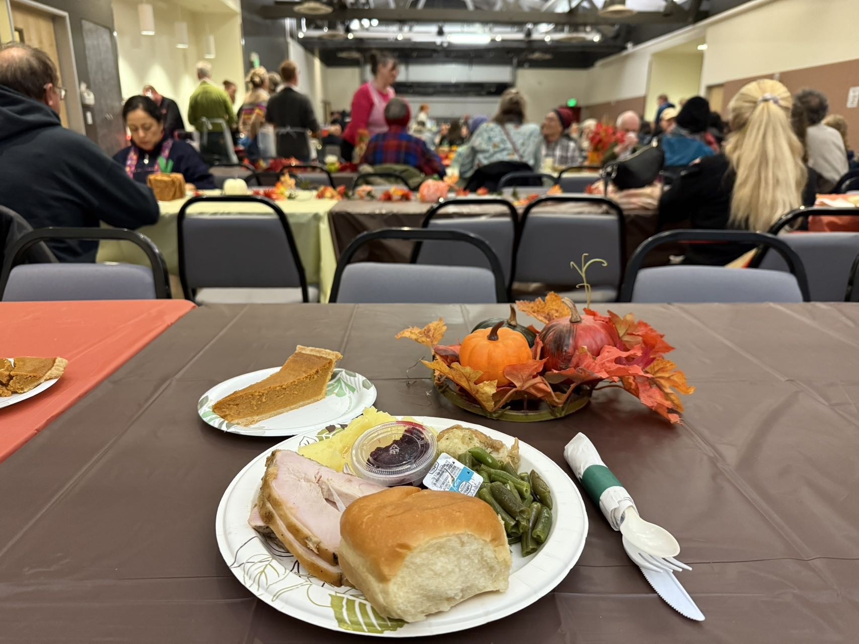 今天下午,我去参加了埃伦斯堡一年一度的社区感恩节免费晚餐。活动在游乐场礼堂举行,由市政府和中央华盛顿大学一起组织,全城居民都可以前来享用。今年的活动时间是下午 3 点到 6 点,虽然食物简单,但氛围却异常温暖。