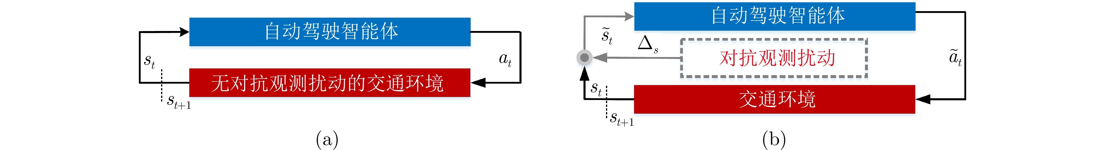图2 自动驾驶策略模型的评估方案((a)和(b)分别表示自动驾驶智能体在无对抗观测扰动和 存在对抗观测扰动下的评估方案)