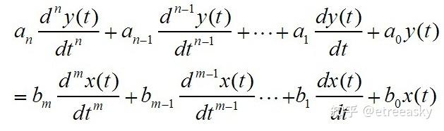 上式中t为自变量(习惯称为时间变量),系数a0、a1......an,b0、b1、......bm均未不随时间变化的常数。看清楚了吗,这样的系统就是线性时不变系统!
