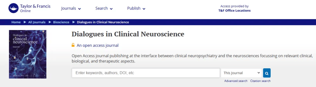 Dialogues in Clinical Neuroscience 期刊接受专家综述、原创论文和简报。