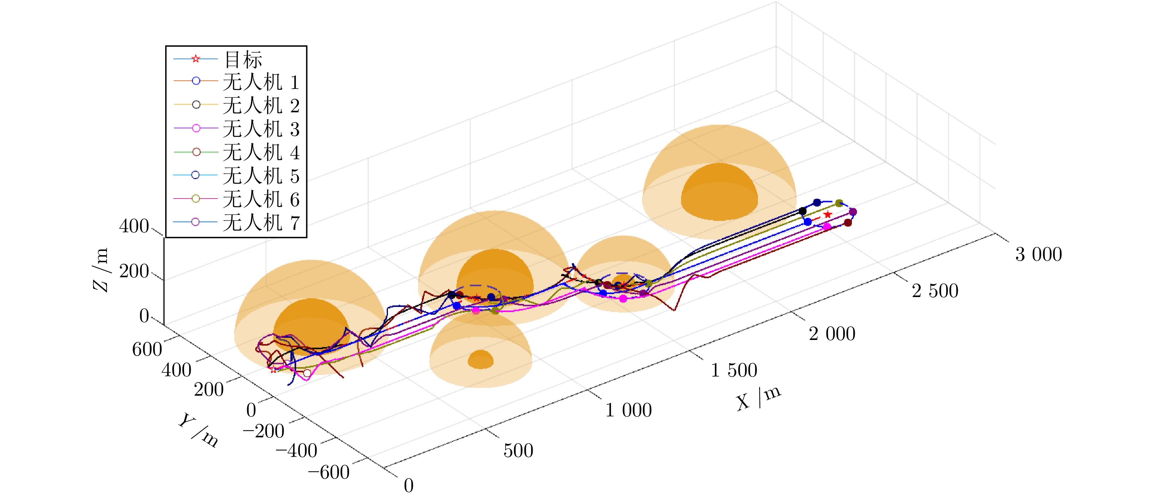 图3 无人机集群目标合围飞行三维轨迹